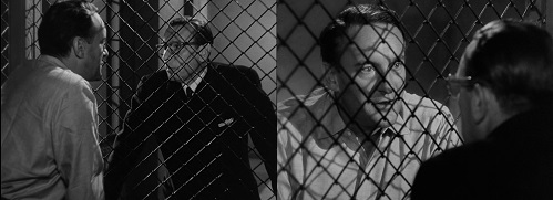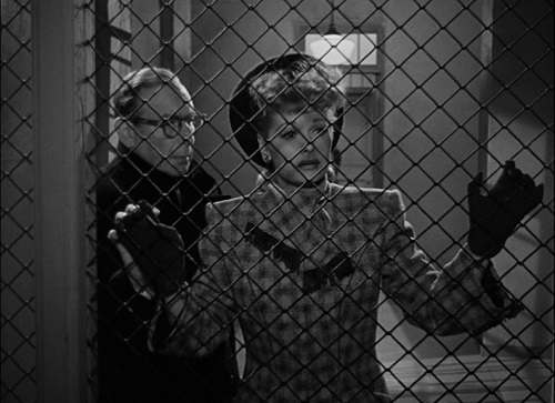 Cette exposition met aussi en place le double thème plastique du film : 1. Le recours aux ombres chinoises. 2. L’abondance des grilles et des grillages, des embrasures, des fenêtres à barreaux ou à croisillons, cadres dans le cadre qui enserrent les personnages dans les rets de l’intrigue et suggèrent l’idée d’un piège sur le point de se refermer sur eux. Quelques exemples ci-dessous.